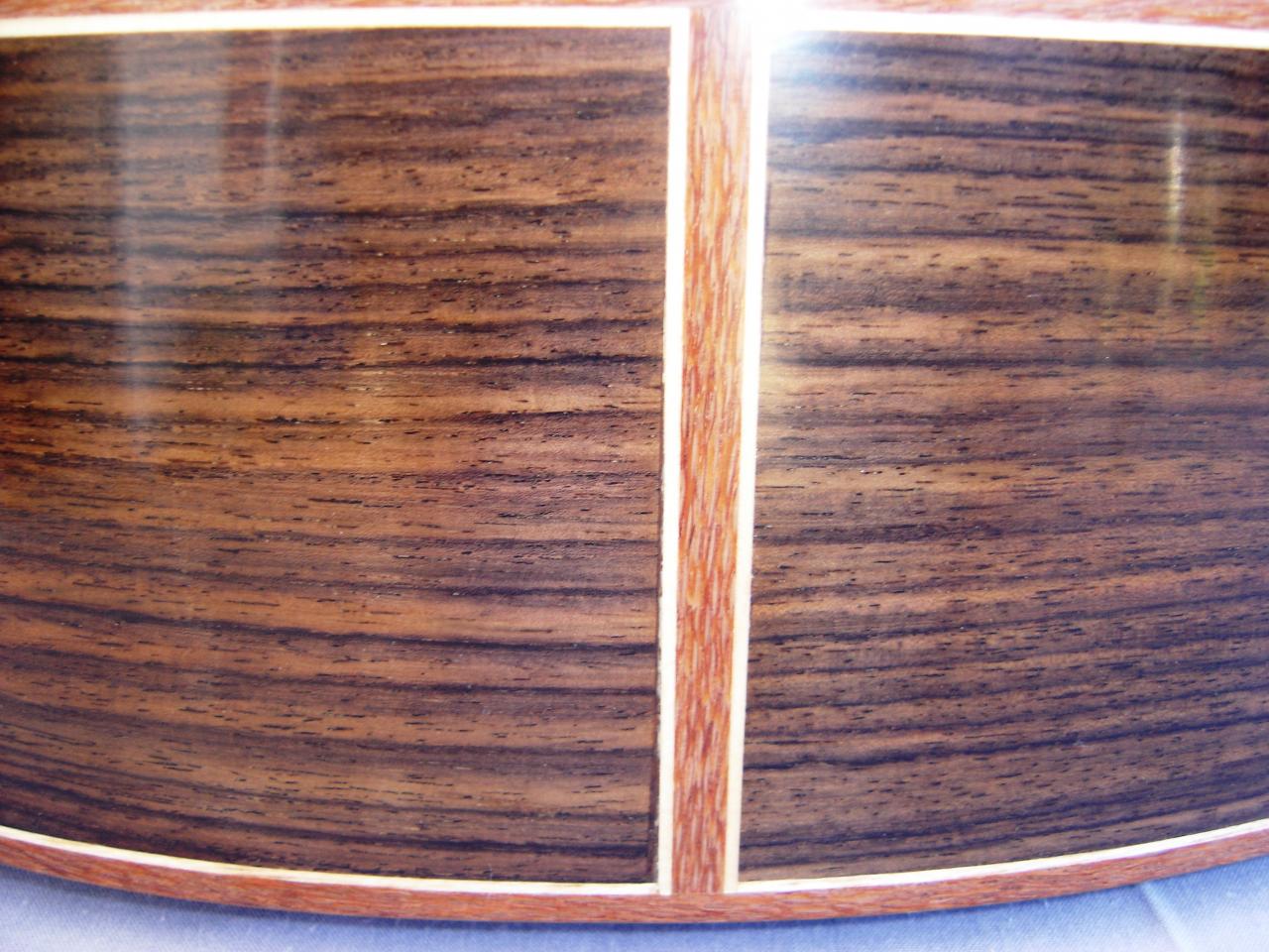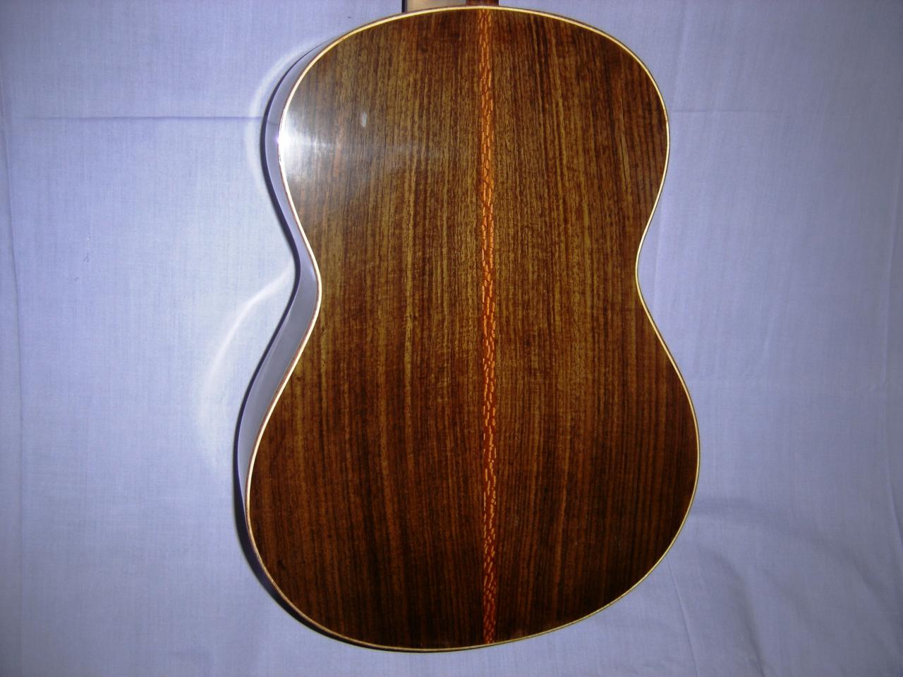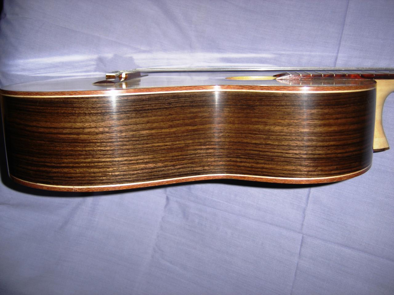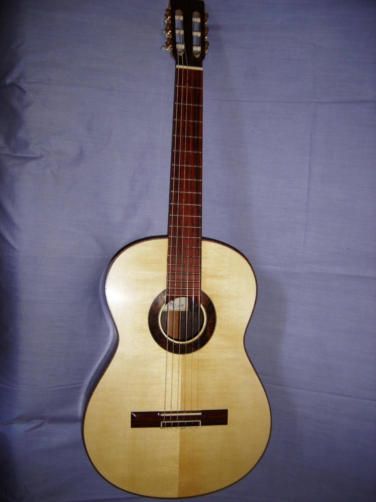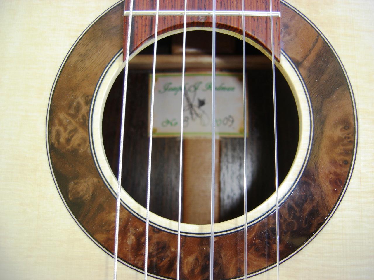 I recently built, and sold this guitar. It has an Engelmann Spruce soundboard, EIR back and sides and a Maple neck. The fingerboard and bridge is in Cocobolo Rosewood. The rosette is in Walnut burl.