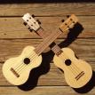 I recently built my son a twin set of soprano Ukuleles. Tops are in Lutz spruce, with walnut back & sides, and a maple back strip. The necks are in mahogany.