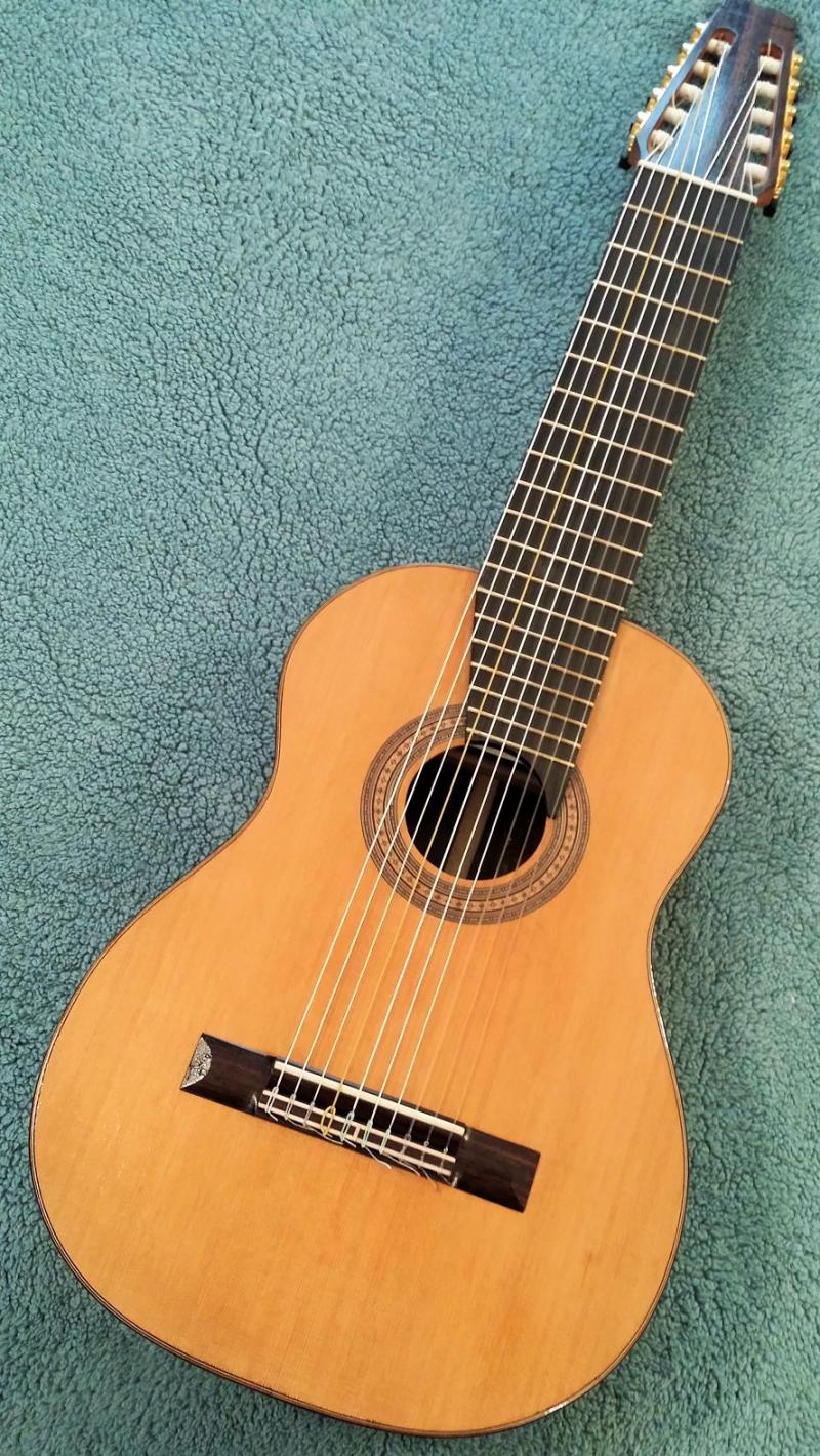 I have built a number of multi-string classical instruments, such as 8-string and 10-string classical guitars. I recently also completed a commission for an 11-string classical guitar (pictures under "11-string classical" in the menu). I plan to also start building Alto guitars.